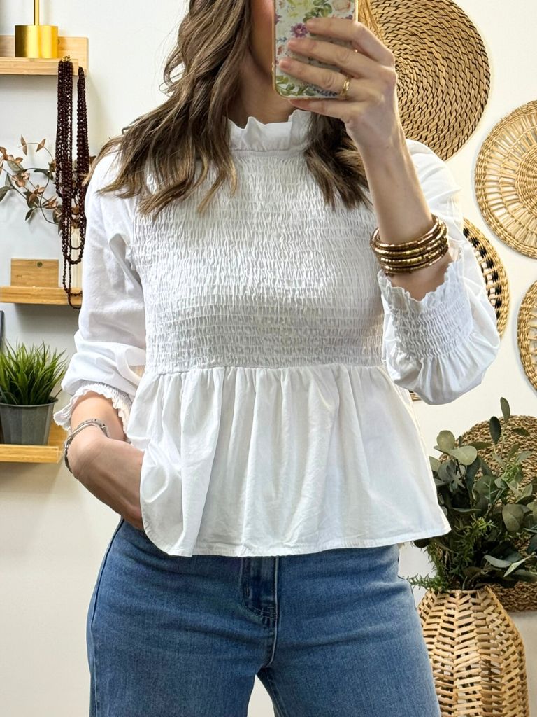 Blusa con cuerpo en nido de abeja , manga 3/4 con nido de abeja en puño.