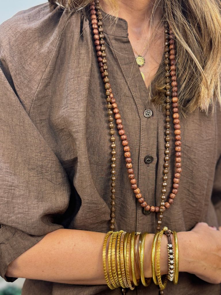 Blusa Capri con escote pico cuello mao y botones. Manga ranglan hasta codo.