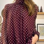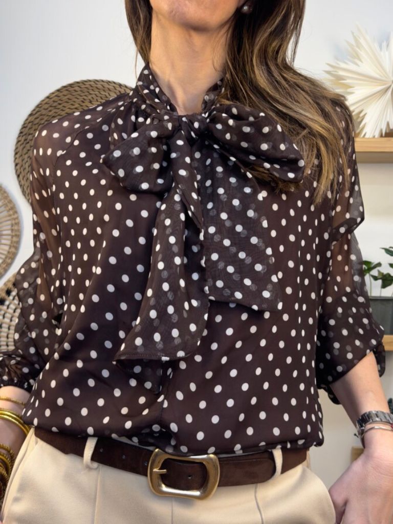 Blusa de lunares con gasa y forro en cuerpo.Gasa libre en mangas.