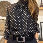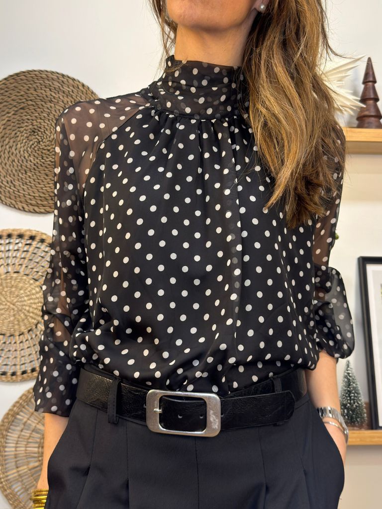 Blusa de lunares con gasa y forro en cuerpo.Gasa libre en mangas.