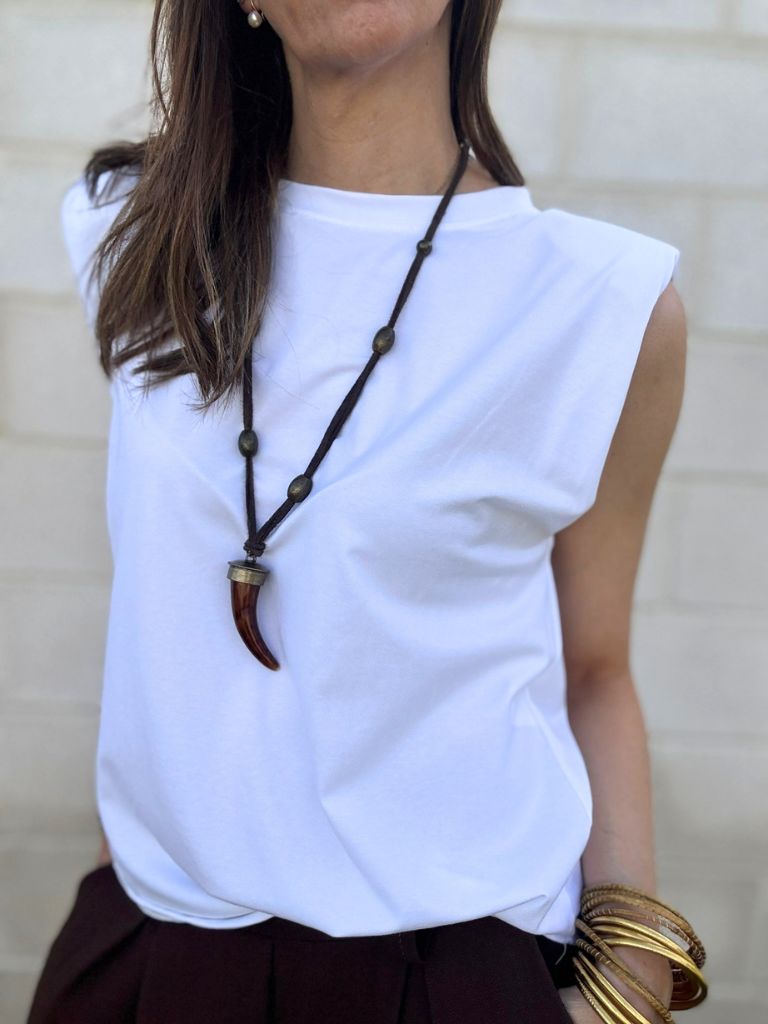 Camiseta sin mangas con funce en hombro y hombreras.