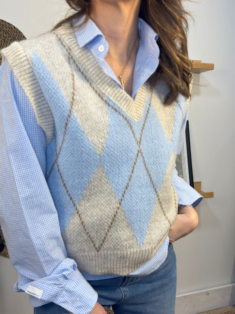 Chaleco cerrado de rombos.