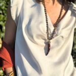 Collar  largo de bolas con colmillo.