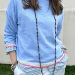 Jersey fino de algodón, manga larga con vivo en otro bicolor en manga y cuello , cuello barco.