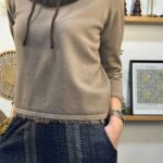 Jersey liso de cuello redondo y manga tres cuartos con flecos cortos en final de mangas y bajo del jersey.