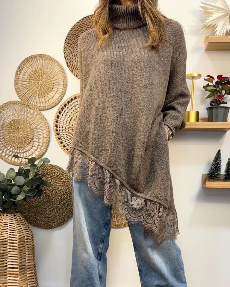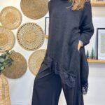 Jersey maxi puntilla de cuello pico.
