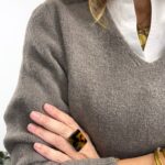 Jersey mohair cuello pico, bajo con elastico dando asi menor talla.