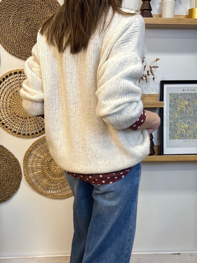 Jersey punto hueco cuello pico .