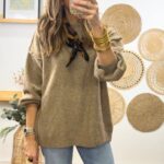 Jersey oversize con manga leve farol en puño. Tacto suave.