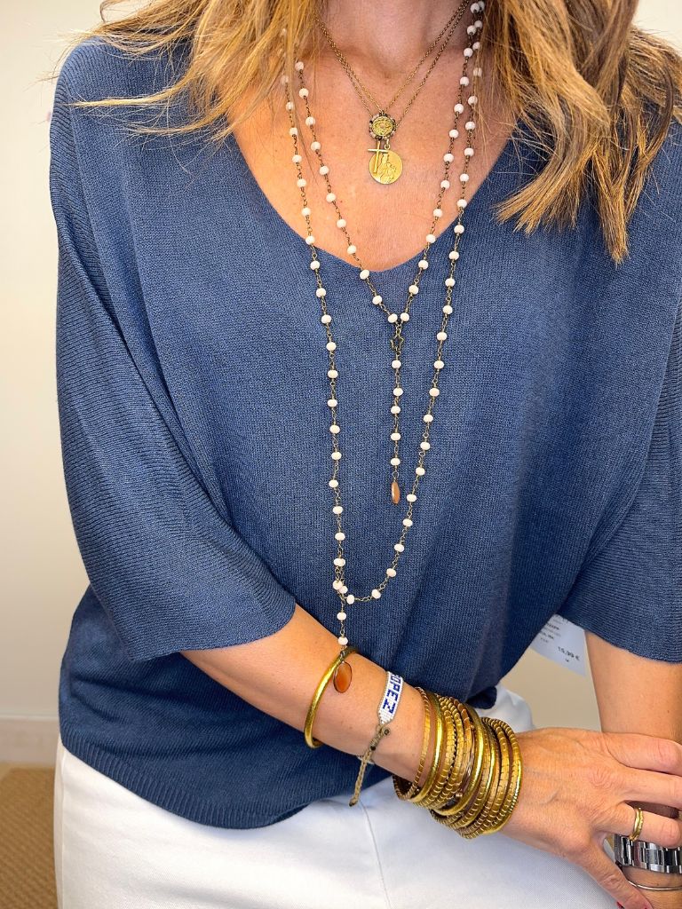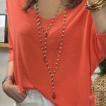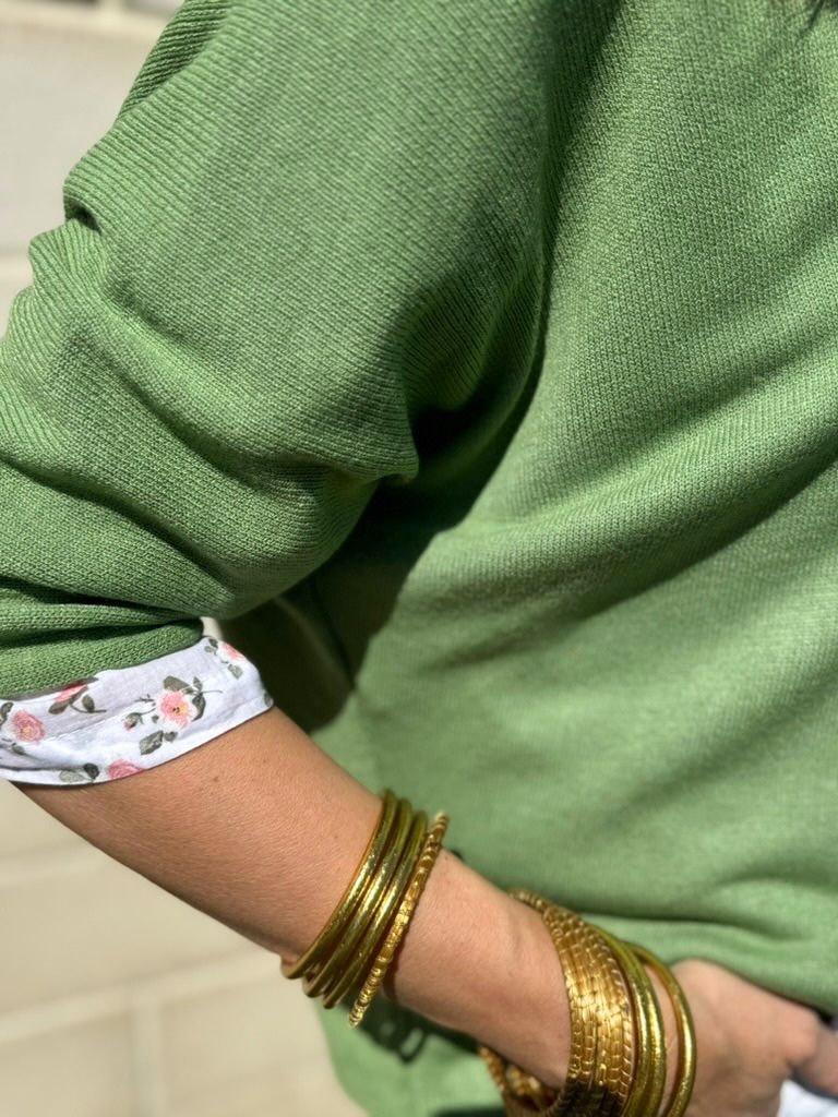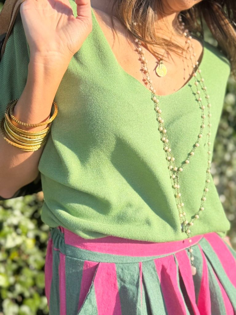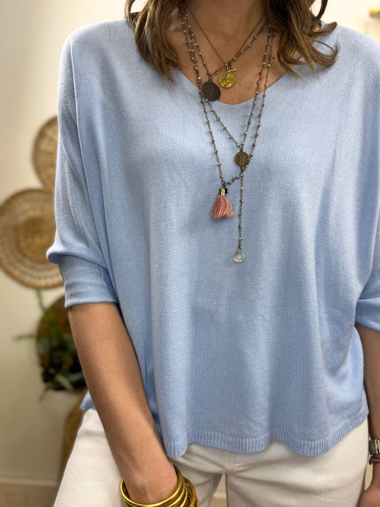 Jersey liso de cuello pico  y manga por encima de la muñeca.