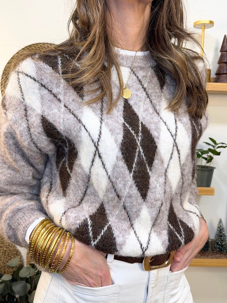 Jersey cuello redondo estampado rombos .