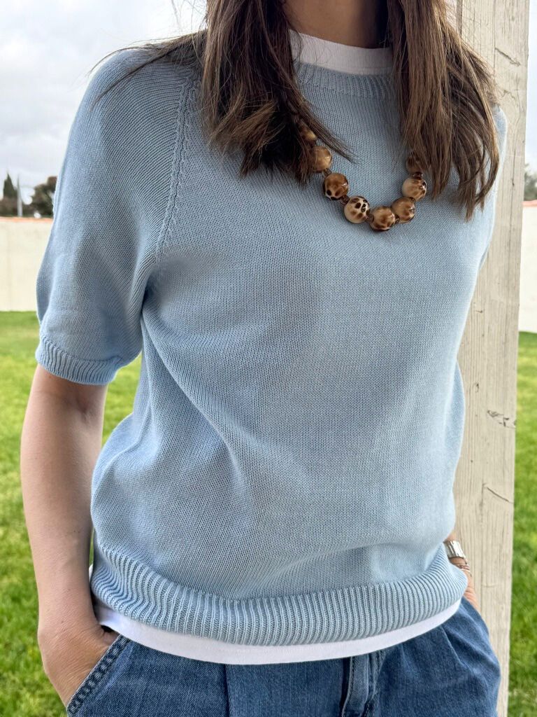 Jersey de algodón ,manga corta con cuello redondo .
