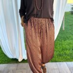 Pantalón raso bombacho ondas , bolso francés con cintura elástica y goma en tobillo.