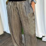 Pantalón raso bombacho rayas verdes , bolso francés con cintura elástica y goma en tobillo.